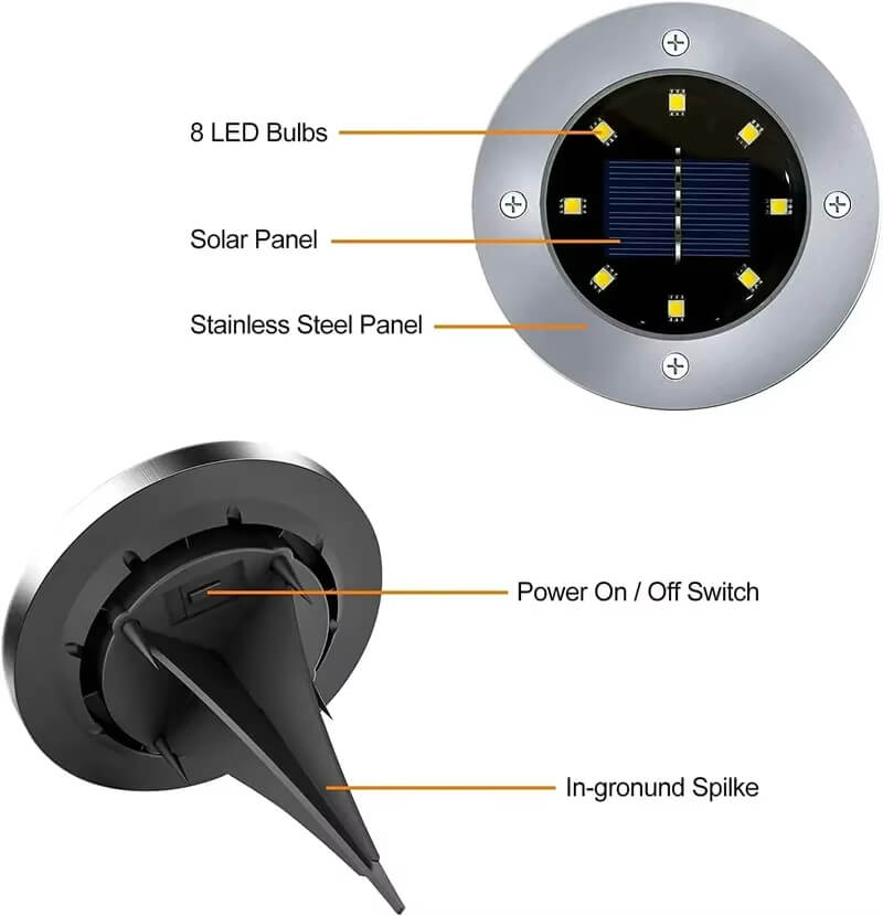 Upgraded 8 LED Beads – Equipped with 8 bright LED bulbs, delivering stronger and wider lighting compared to ordinary 4-LED ground lights. Perfect for lighting up your path and enhancing garden ambiance.