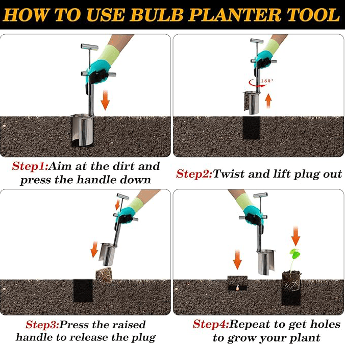 Simply insert, twist and pull create perfect planting holes for a variety of bulb plants, flowers, ground covers and vegetables.